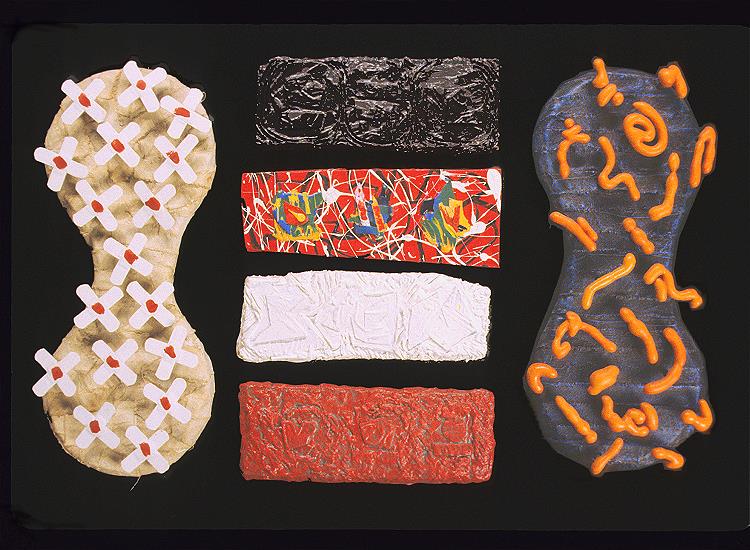 canvas, polyfoam, band-aids, epoxy putty on styrofoam